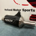 Dieser Schalldämpfer ist mit dem originalen Auspufftopf austauschbar und passt entweder auf den originalen Auspuffkrümmer oder den Arrow Auspuffkrümmer.