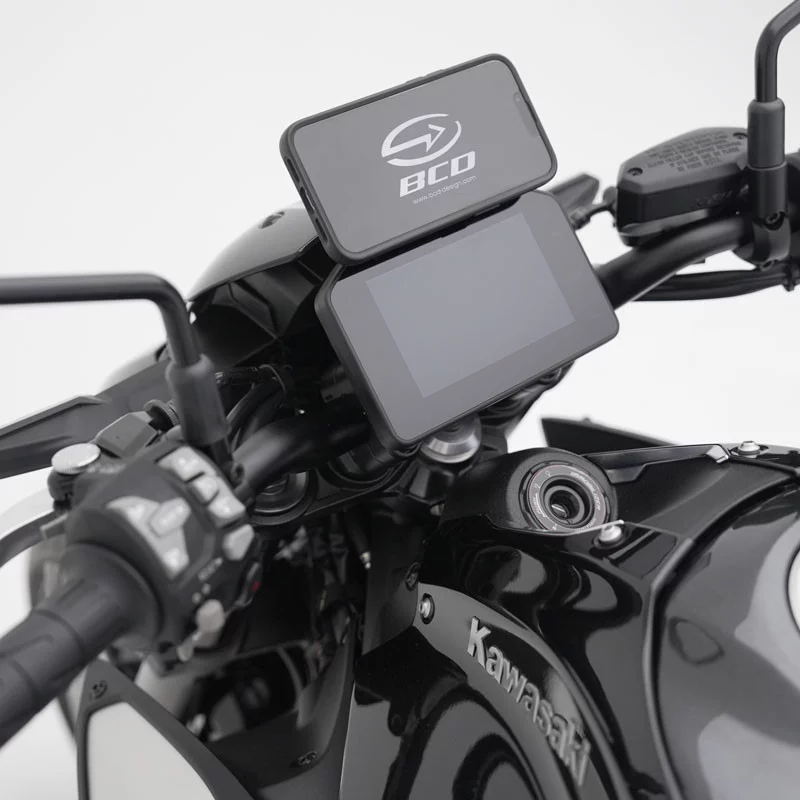 - Die BCD-Halterung aus schwarz eloxiertem Aluminium für die Z900 von 2025.