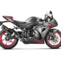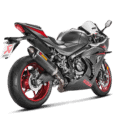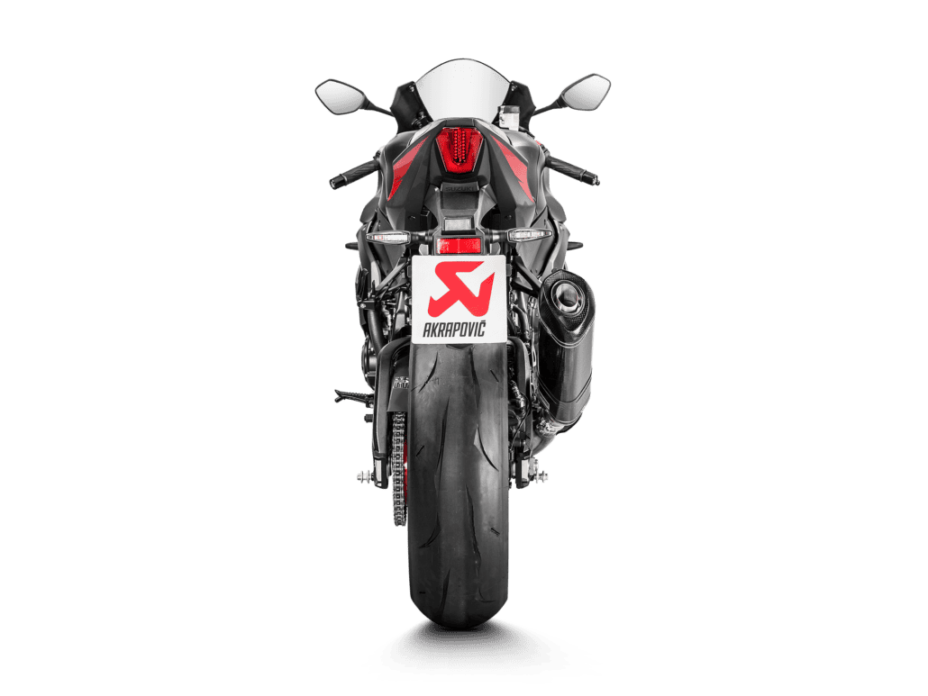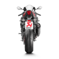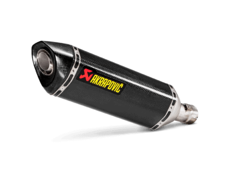 This is a hexagonal muffler design constructed from lightweight titanium with a carbon-fibre outer sleeve, endcap, and heatshield. The distinctive Akrapovič sound has a deeper tone. The entry level in exhaust tuning offers improved torque and power throughout the whole rev range. The muffler is smaller than stock to offer a more striking and sporty appearance, and it weighs approximately 40% less than the standard exhaust. It is EC- and ECE-compliant, there is no need for remapping, and it has a simple plug-and-play installation.