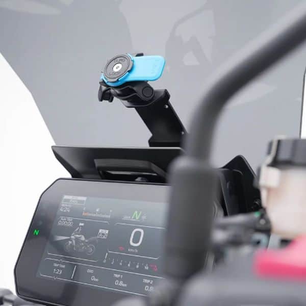 Die BCD Design Halterung für Yamaha Tracer 9 GT & GT+ ist so konzipiert, dass sie dem elektrischen Hub des Windschutzes folgt. Außerdem verfügt es über 3 Aussparungen für die optimale Anpassung an die Größe Ihres Telefons. Wie Sie sich vorstellen können, ist die Quadlock Tracer 9 Halterung perfekt für die Nutzung von Apps wie Waze oder Coyote geeignet. Sie bietet ein Heads-up-Display, mit dem Sie sich auf die Straße konzentrieren können und wichtige Echtzeitinformationen erhalten.
