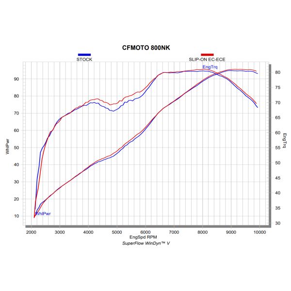 The development process focused on throttle response and rideability. It delivers performance gains, particularly in the mid and top rpm ranges, with increases of 1.3kW (1.7 hp) in power and 2.5 Nm of torque at 4,900 rpm, as tested on Akrapovič’s in-house dyno and when compared to a CFMOTO 800NK equipped with a standard stock exhaust system. It is EC/ECE type approved and can be easily installed without the need for remapping.