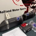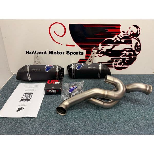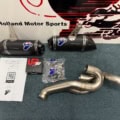 Door het plaatsen van deze uitlaat wordt de originele katalysator verwijderd. De dempers zijn gemaakt van roestvrij staal en voorzien van een zwarte titanium huls, hittebestendige titanium klemmen en een gefreesde aluminium eindkap. De uitlaatbochten zijn van roestvrij staal,