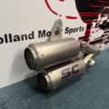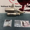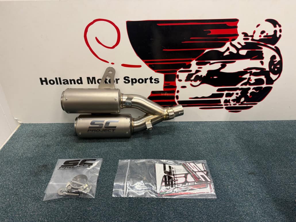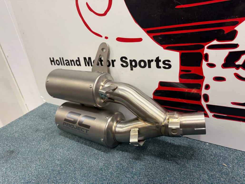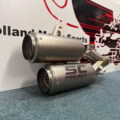 The Twin CR-T, derived from the iconic Moto 2 exhaust, is available in titanium or carbon fiber. Designed and developed to give a sporty character to your Ducati Monster 937. A deep and dark sound, unique in the panorama of aftermarket silencers. The Twin CR-T combines its racing look with some first class technical and aesthetic solutions: the use of materials derived from the aeronautical industry, such as titanium or carbon fiber with dedicated treatment to withstand very high temperatures and welding of the bracket and fitting with TIG technology, make it the perfect silencer to enhance the line of your bike.