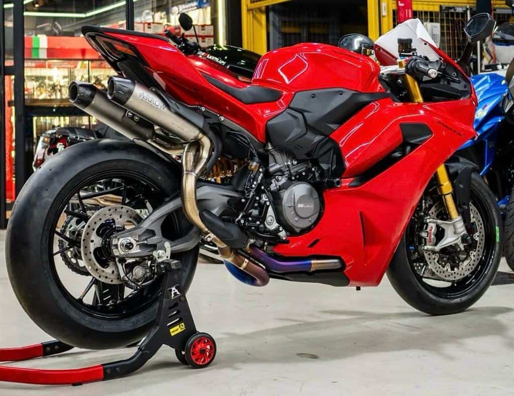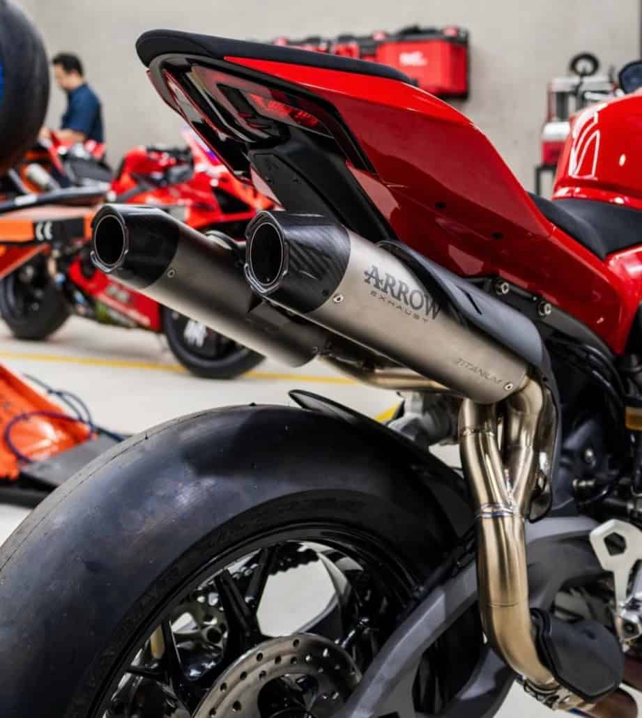 Dit zijn twee titanium uitlaat dempers met carbon eind kappen.