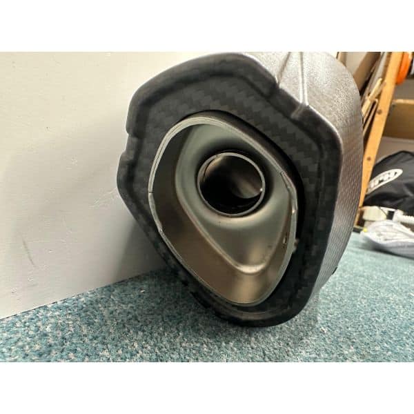 Veloce Aluminium dark uitlaat demper met een carbon eind kap.