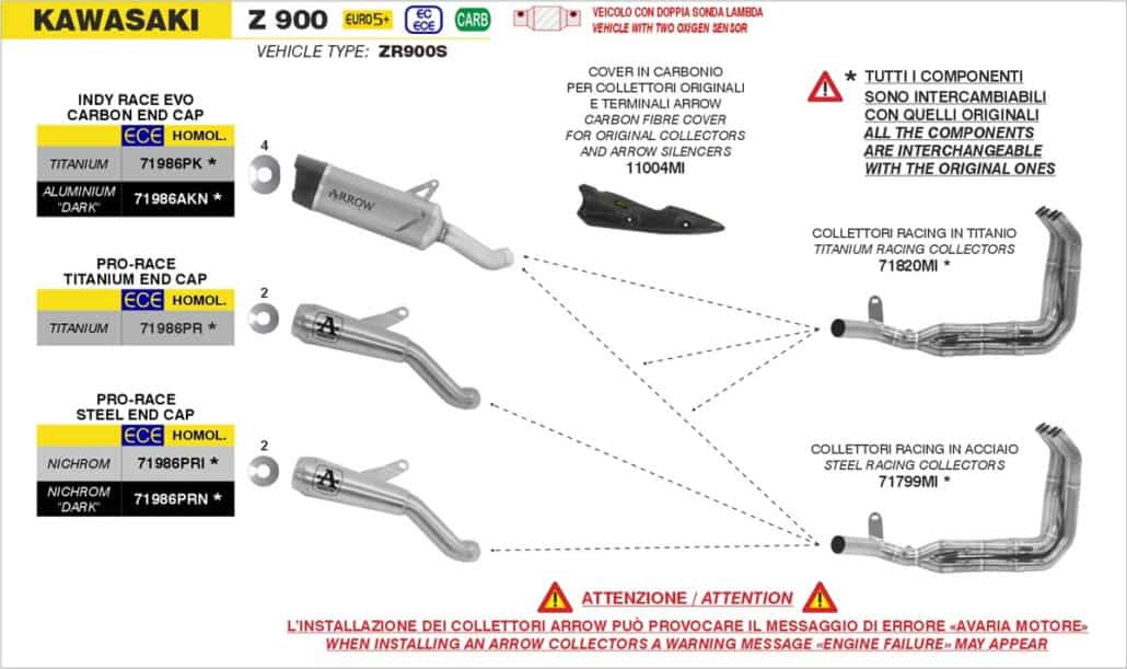 Als u een uitlaat demper heeft die op de originele uitlaatbochten past dan past deze ook op de Arrow uitlaatbochten.