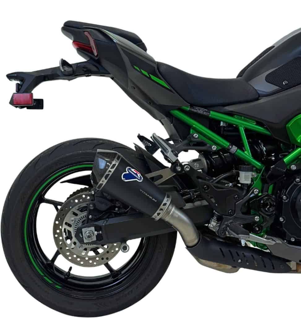 Kawasaki Z900 / E A2 2025 tot heden Termignoni titanium zwarte uitlaat demper met carbon eind kap K09408040INC.