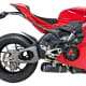 Let’s start from the new exhaust dedicated to MY 2023, the street legal full system GTR8824TOM: the collectors are entirely made of AISI304 stainless steel with CNC machined connections, compensators and 3in1 pipe as in the Moto2 exhaust. The 3in1 pipe contains a special catalytic converter, very different compared to other aftermarket products. Such catalytic converter ensures high-performance thanks to a number of racing cells and strong impregnation of noble metals. So, the catalytic converter is truly a „precious“ part and allows you to be within the gas limits set by the Euro5 Regulation and improve the performance of the motorbike at the same time. Then, the silencing box follows the catalytic converter and it is combined with the aggressive Grid-O muffler. This is the same silencer which is the 2020 Moto2 World Champion, entirely made of titanium, with TIG welding and with a titanium grid emphasizing the Street Triple sound and look.