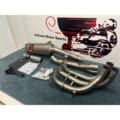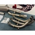 A high-grade titanium muffler outer sleeve and end cap is combined with a stainless-steel link pipe and headers. It is a complete exhaust system for the Yamaha R9 that follows the look of the Akrapovič exhaust systems for the Yamaha R6, R7, and R1, with a design similar to the Akrapovič exhausts used in the World Supersport Championship.