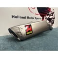 The muffler exits on right side of the bike for a racing look, and it is supplied with an aluminium muffler bracket. Developed for closed-course competition circuits only, this system has no catalytic converter or pre-muffler, and so ECU remapping is mandatory.