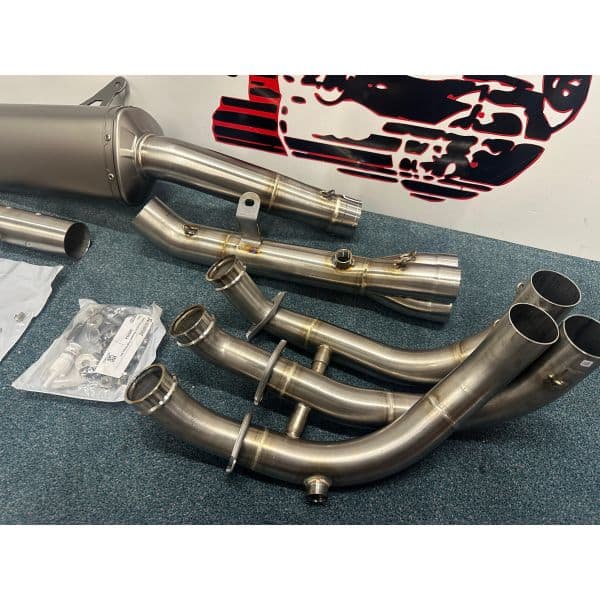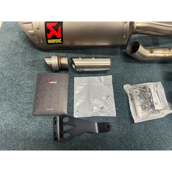 The muffler exits on right side of the bike for a racing look, and it is supplied with an aluminium muffler bracket. Developed for closed-course competition circuits only, this system has no catalytic converter or pre-muffler, and so ECU remapping is mandatory.