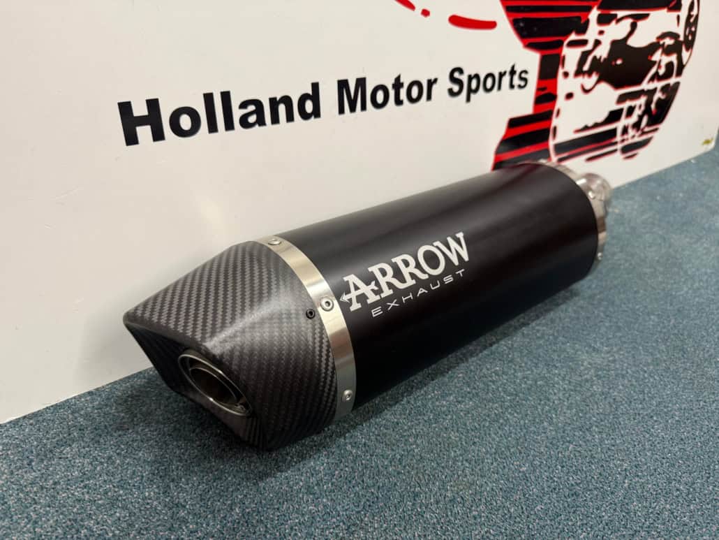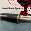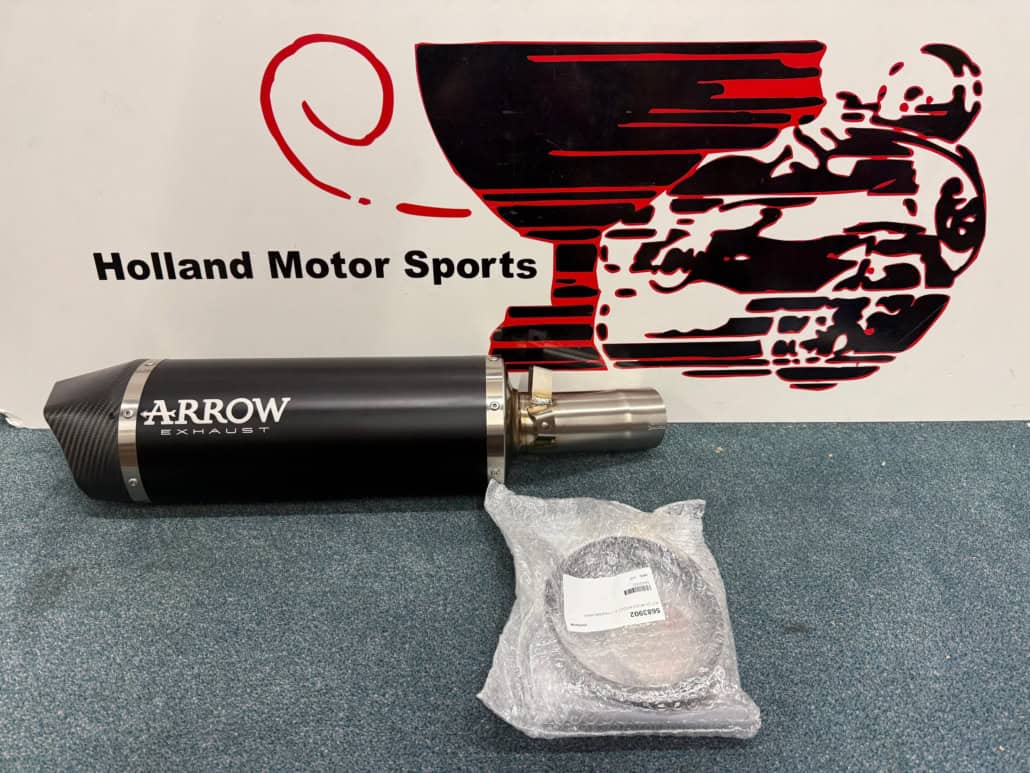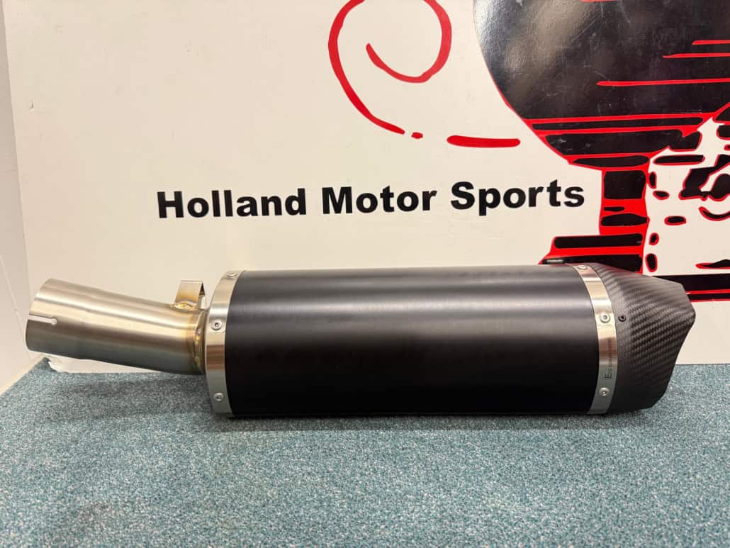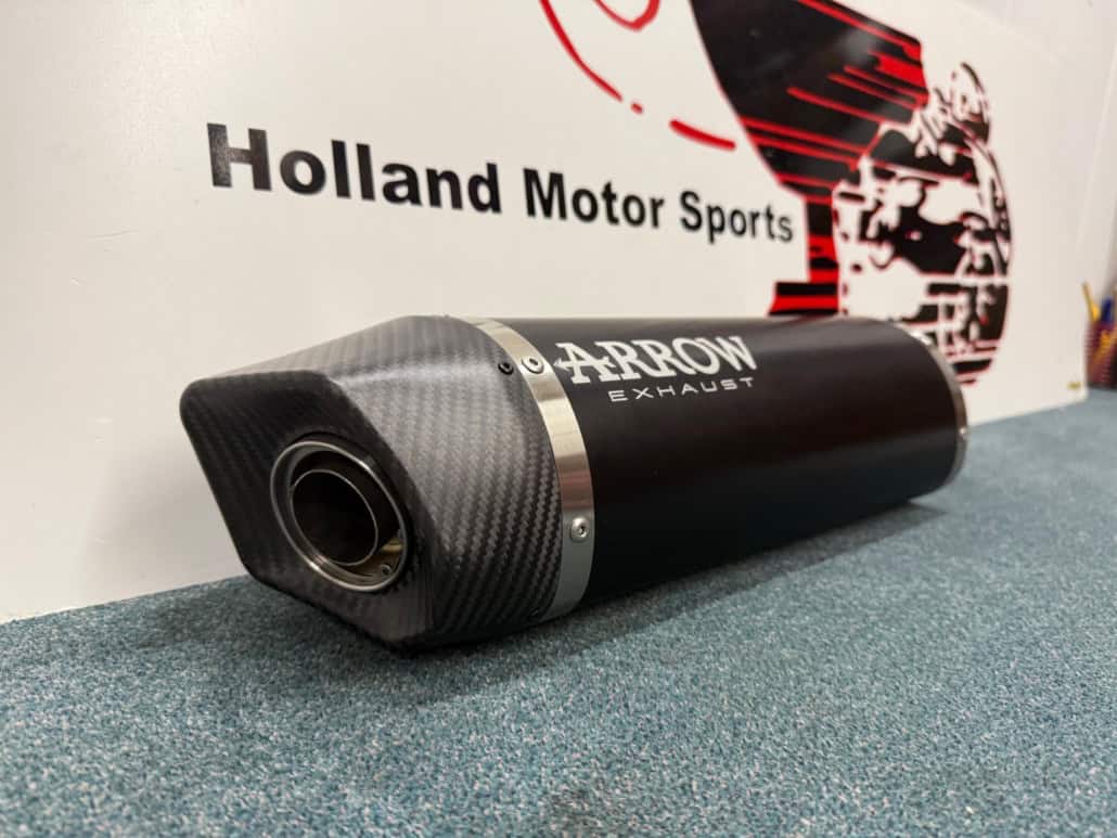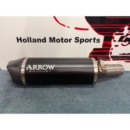 EU approved with removable dB killer Different silencer materials available: titanium, aluminium or black aluminium On the picture you see the titanium silencer. Fits on the original and Arrow collectors.