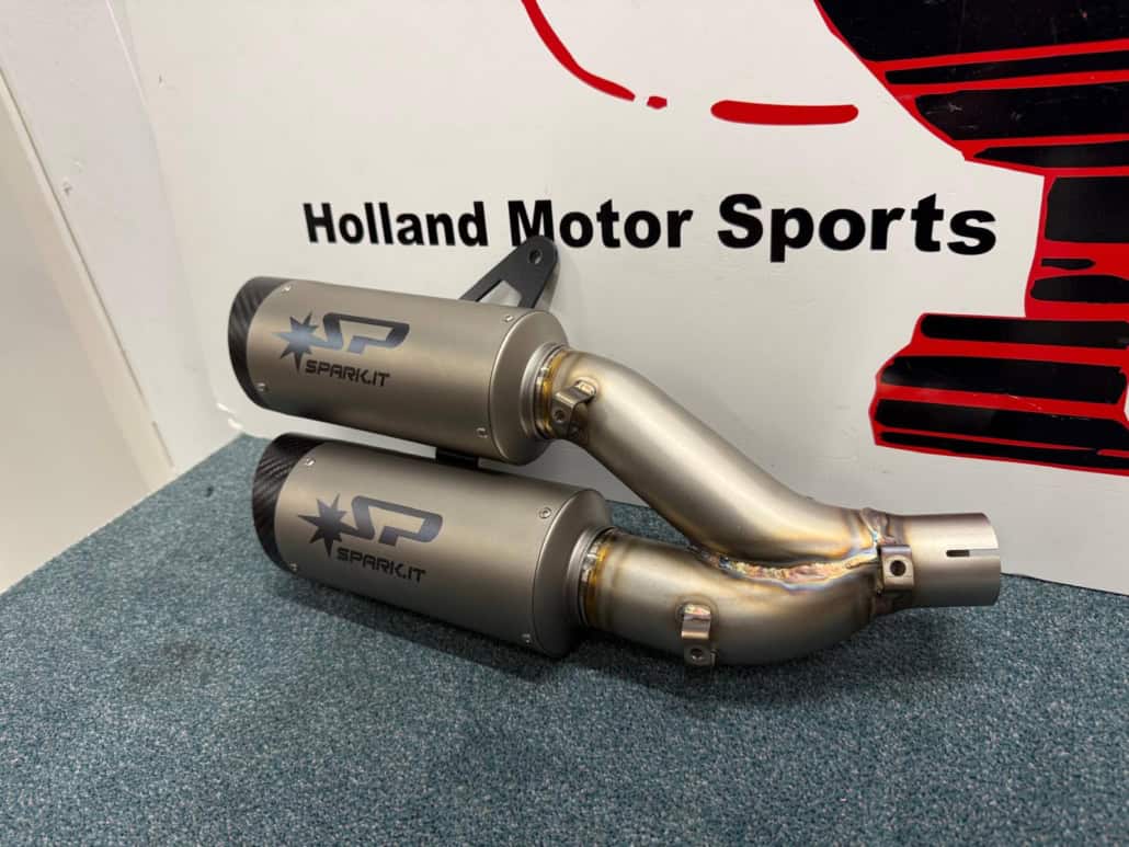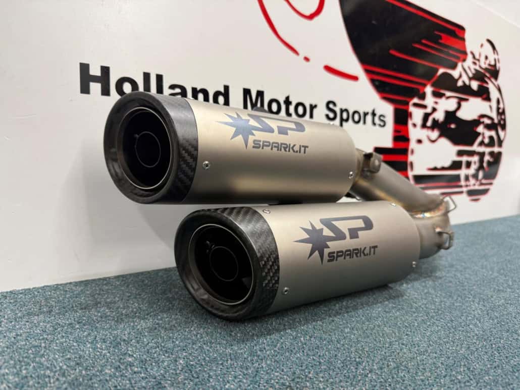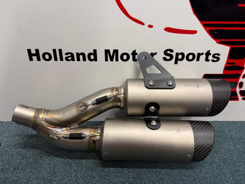 This is a very light slip-on made entirely of titanium, reducing the weight by 1 kg compared to the original exhaust. In addition, the slip-on design of the exhaust allows an increase of 2 hp with the Euro5-approved version, without any other modification to the engine.