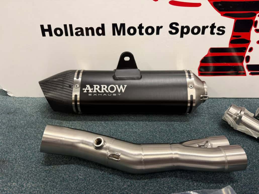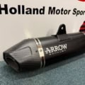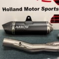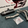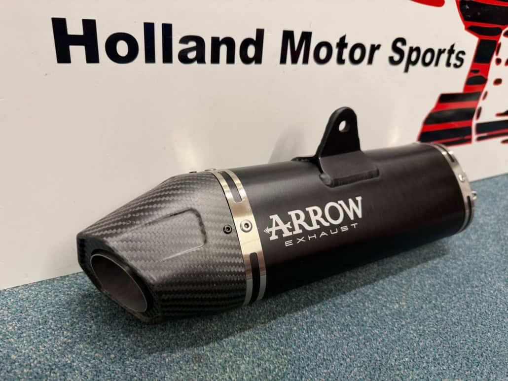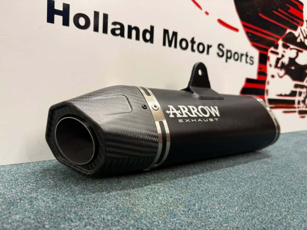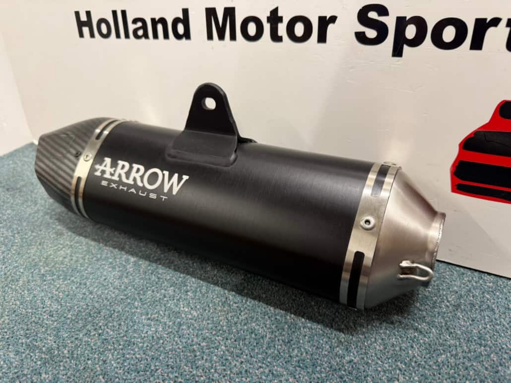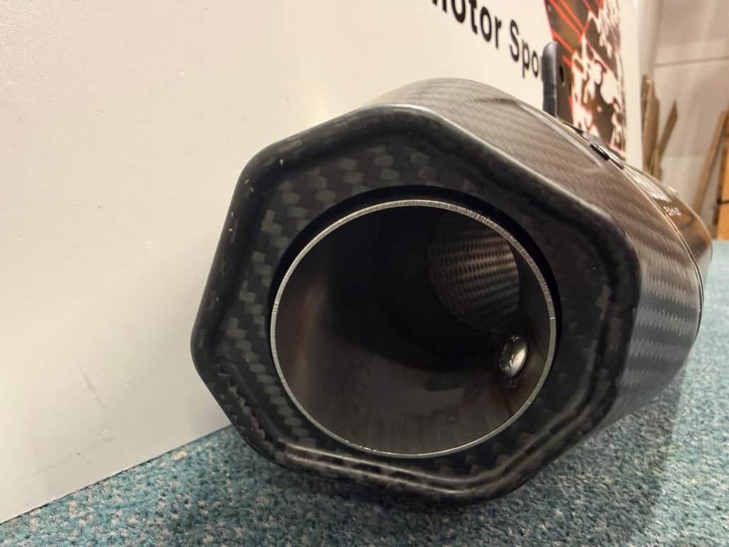 This exhaust has an aluminum black muffler with a carbon end cap.