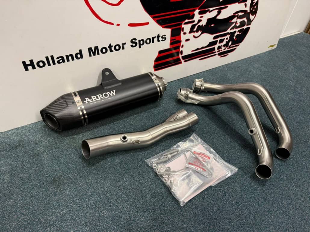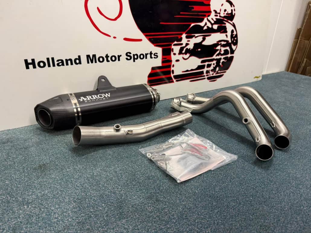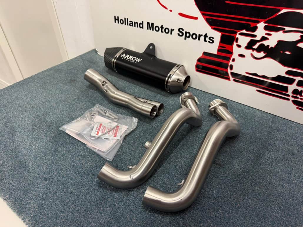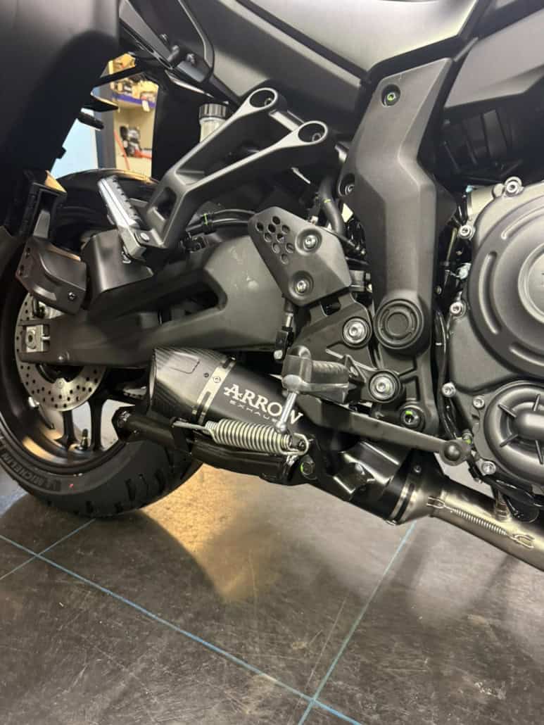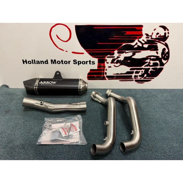 This exhaust has an aluminum black muffler with a carbon end cap.