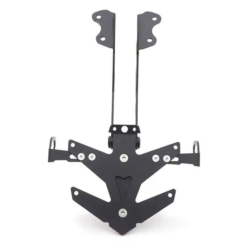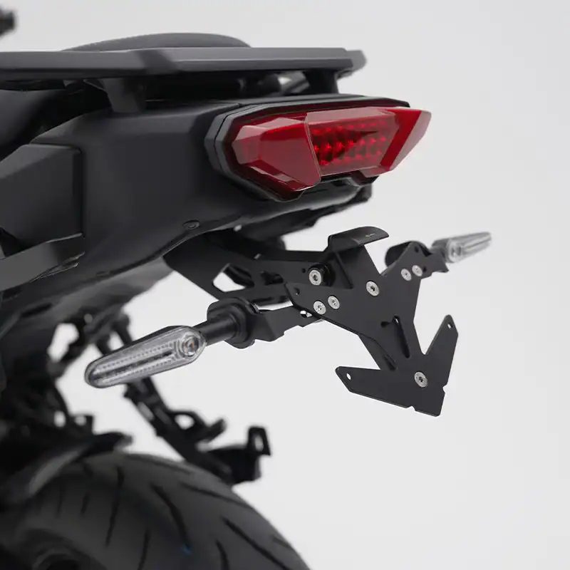 This license plate holder is sold with Yamaha mounting brackets (indicator tabs), designed to directly fit the original indicators of the Tracer 9 / GT, as well as universal mounting brackets compatible with the majority of aftermarket indicators.