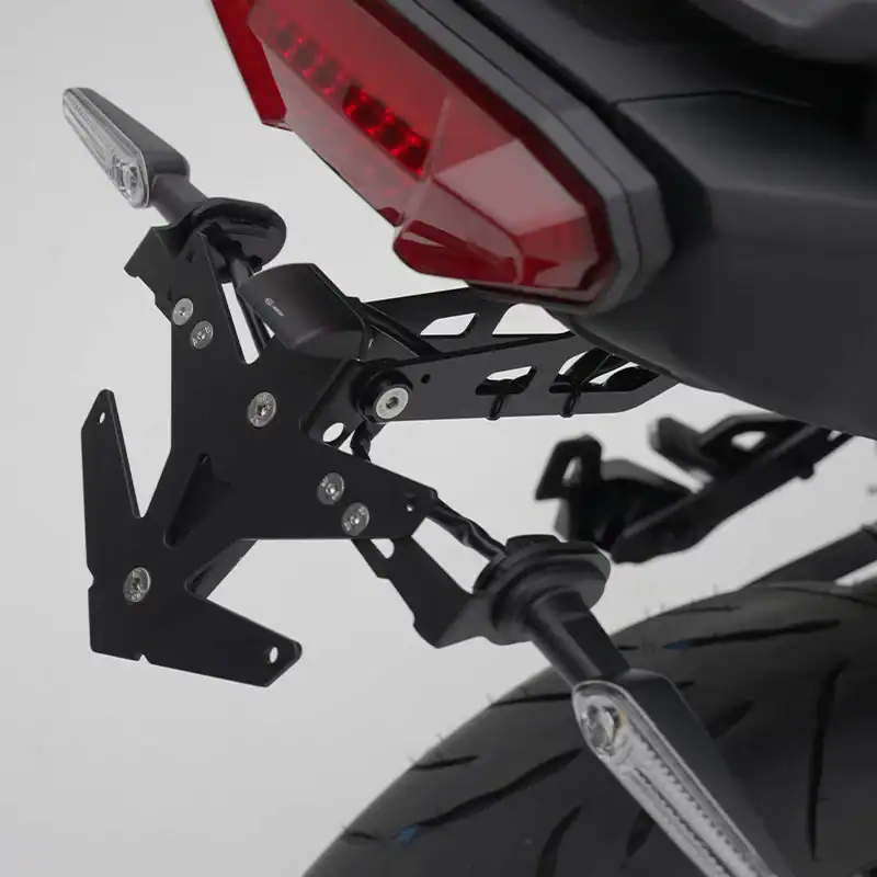 Despite its compact design, the bracket allows you to keep the original side cases and turn signals without any risk of them touching.
