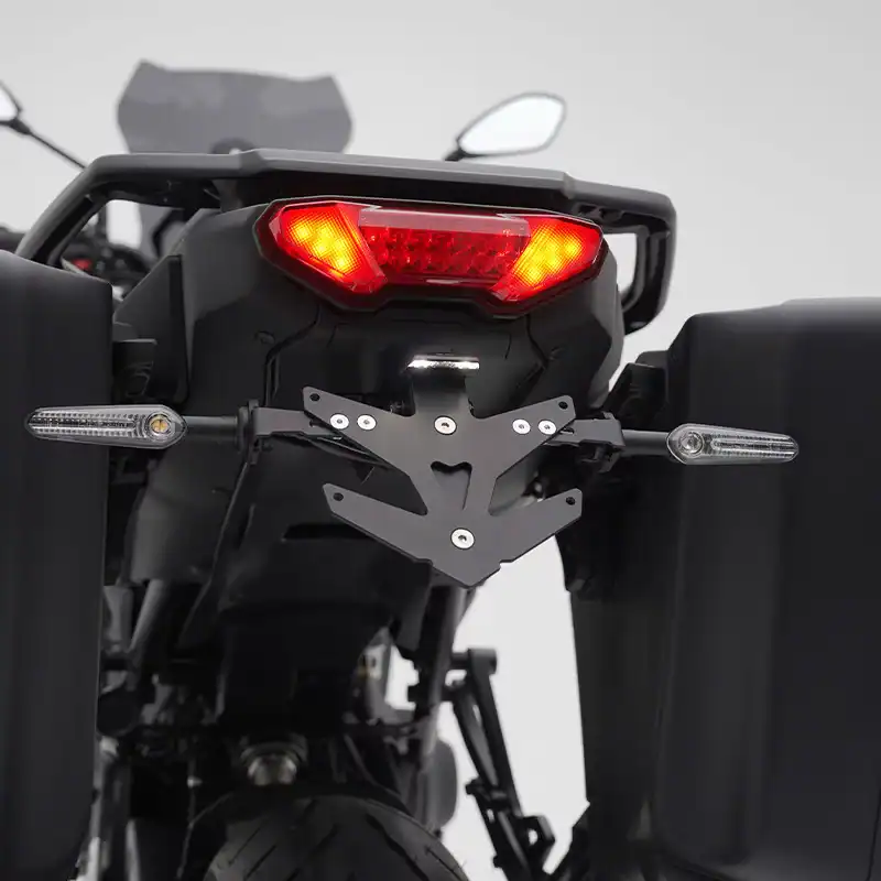 Discover the brand new PLATE HOLDER TRACER 9/GT FROM 2025 BCD Design. This very high quality aluminum support allows you to enhance the rear of your Yamaha Tracer ! Finally, a short license plate holder compatible with the original side cases !