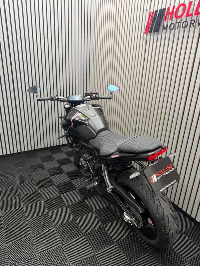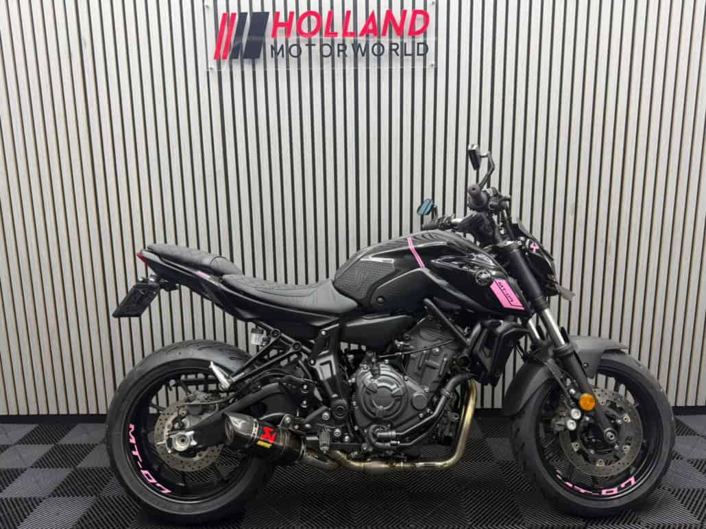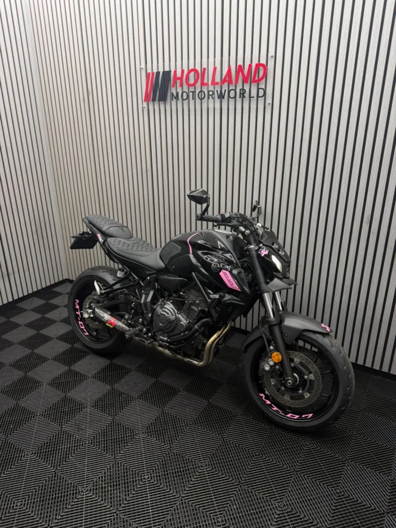 Te koop aangeboden: Yamaha MT-07 (2024) in een unieke black & pink custom uitvoering.