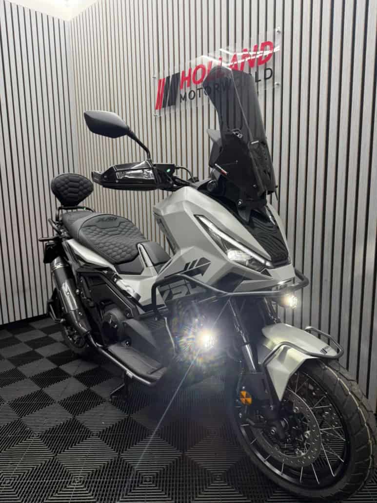 Te koop aangeboden: een gloednieuwe Honda X-ADV 2026 in nardo/zwarte custom uitvoering. Deze motor is nieuw, met 0km op de teller en betreft het nieuwste 2026 model.