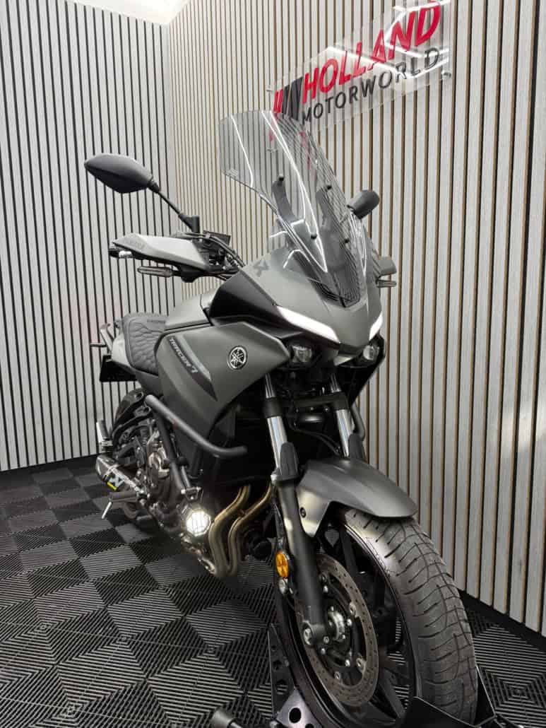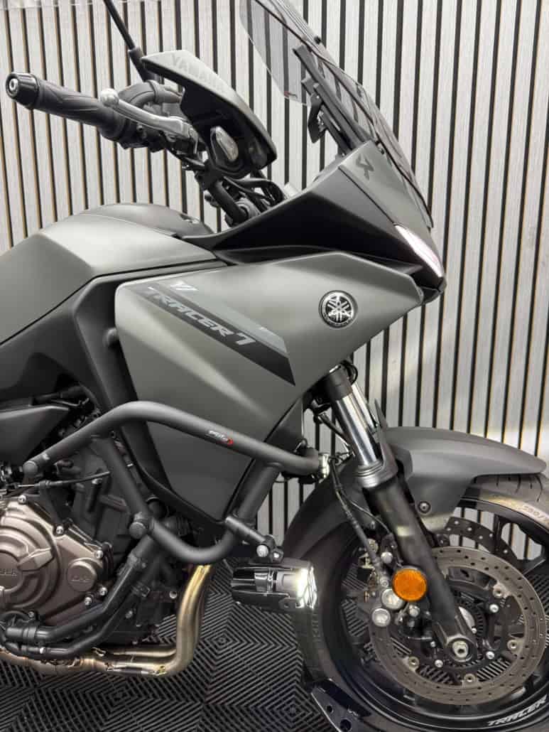 Te koop aangeboden: Yamaha Tracer 7 uit 2022 in de Tech Kamo kleurstelling, met slechts 5.640 km op de teller.