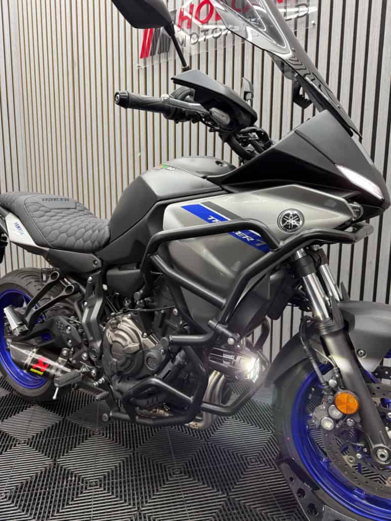 Te koop aangeboden: Yamaha Tracer 7 uit 2022 in de Icon Blue kleurstelling, met slechts 2.747 km op de teller.