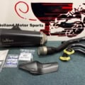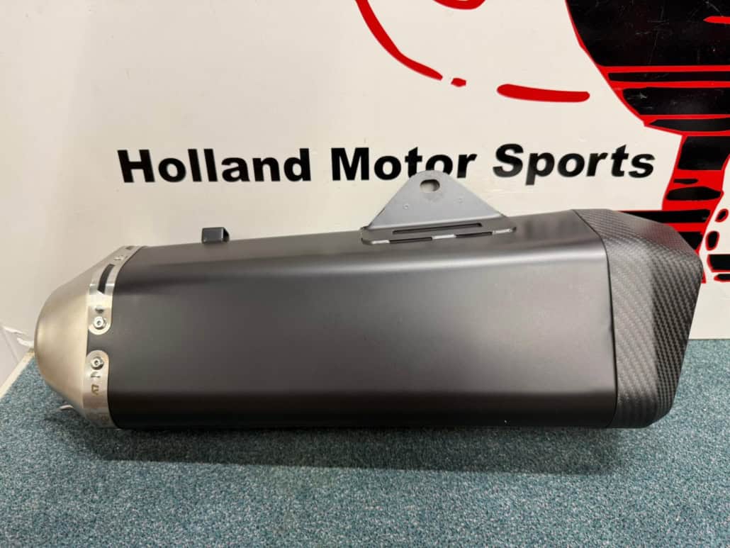 - Der Auspuff verfügt über eine Endkappe aus zweiflutiger Kohlefaser, die mit einer matten, klaren Beschichtung für maximale UV-Beständigkeit versehen ist.
