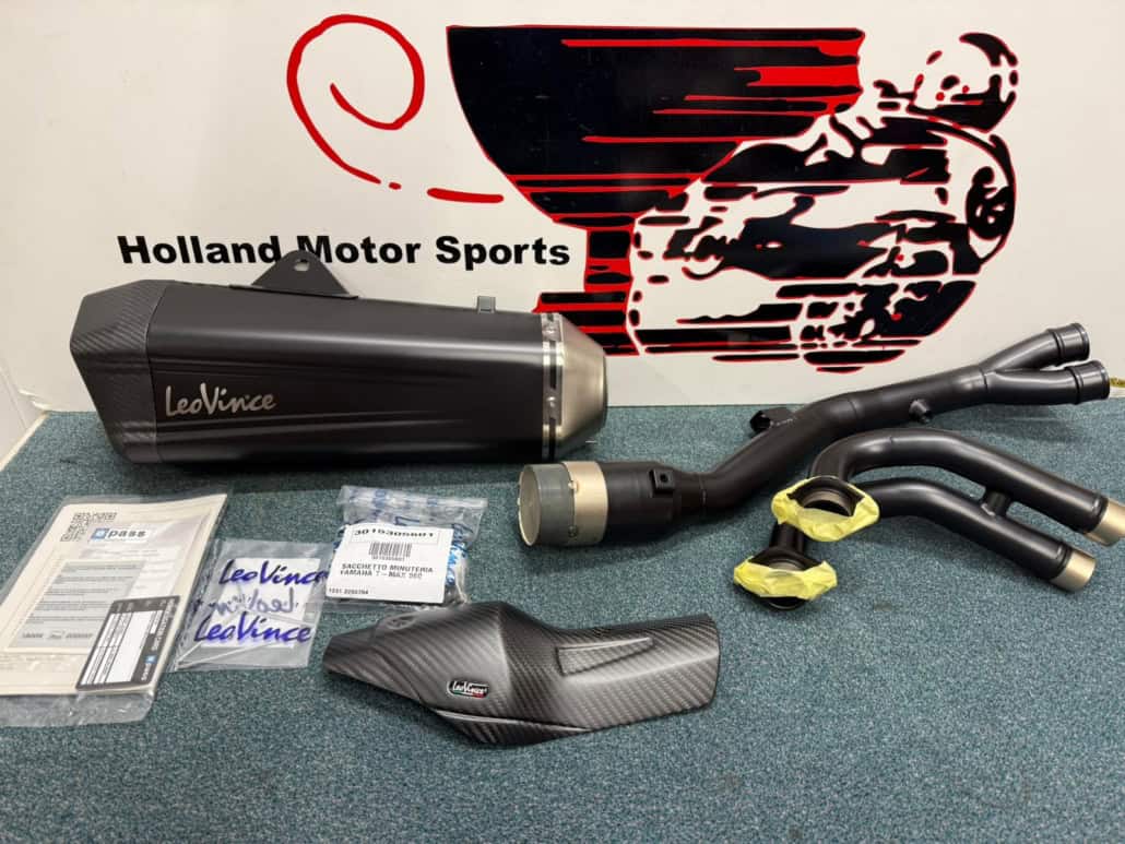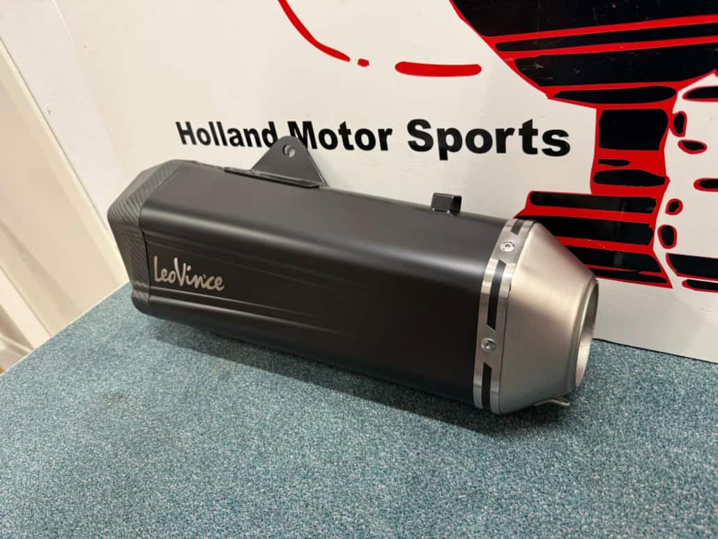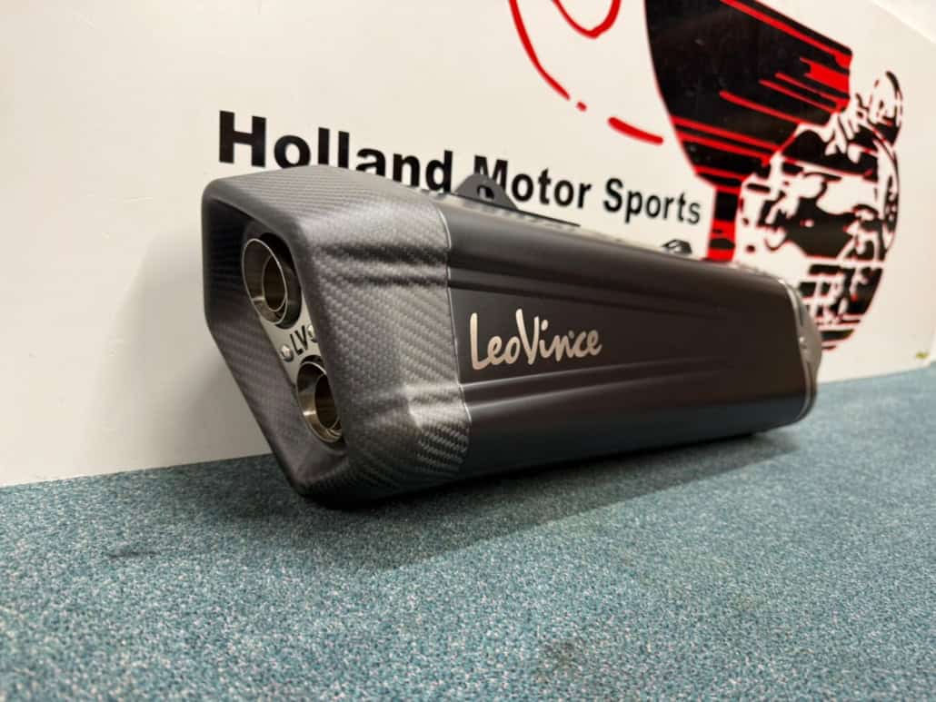 - Das Oversize-Design macht den LV-12 Black Edition zum perfekten Begleiter für Abenteuer-Motorräder und Maxi-Scooter und das gelaserte LeoVince-Logo verleiht dem Auspuff ein erstklassiges Finish.